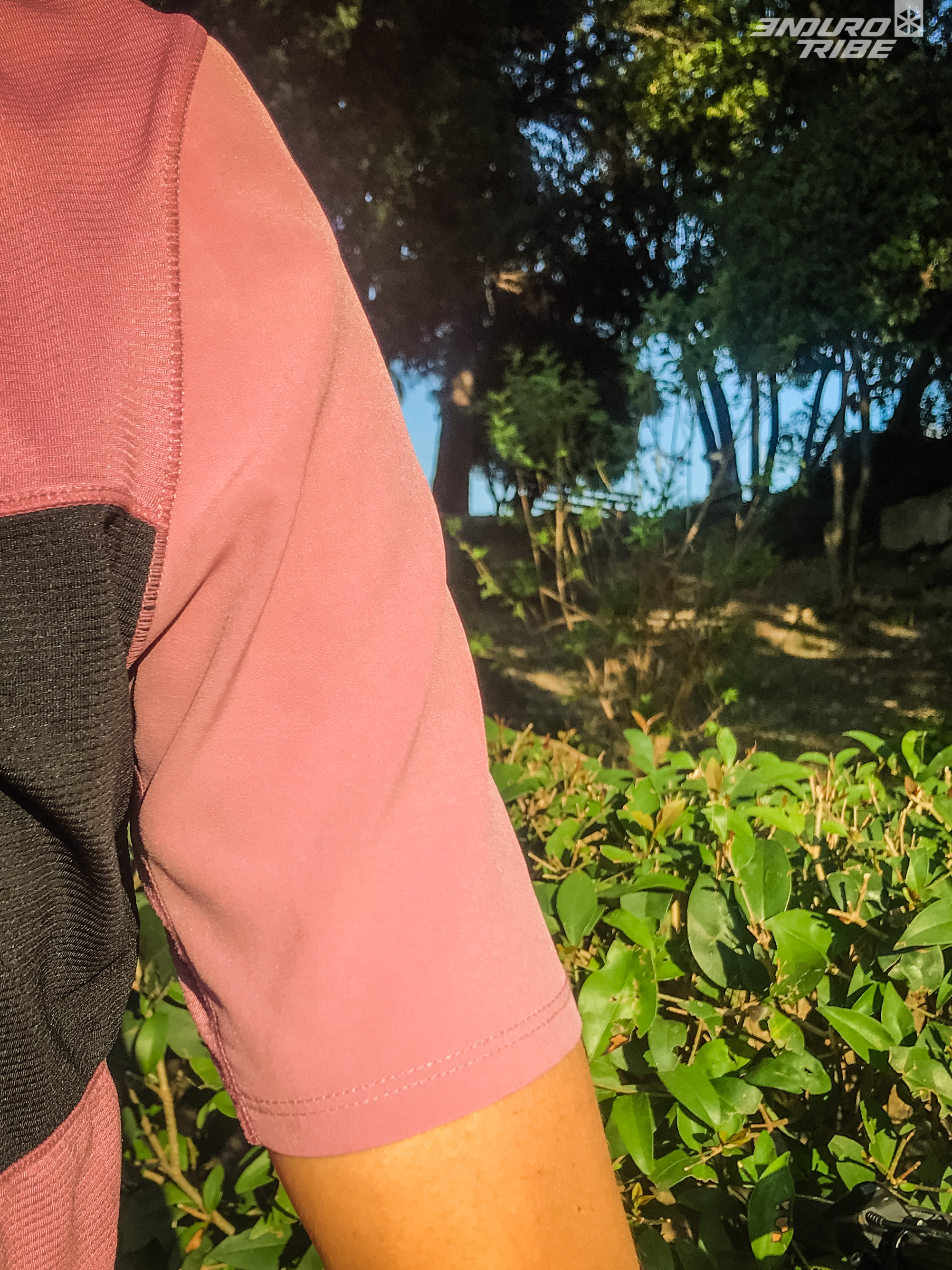 Le maillot Flexair est bicolore et a une coupe assez ample, légèrement cintré. Le tissu est synthétique, doux et agréable à porter. L’évacuation de la sueur est efficace. Les manches courtes sont assez longues et permettent une bonne liaison avec les coudières. Celles-ci sont en matière résistante à l’abrasion afin d’éviter qu’elles ne s’abîment pas (branches, ronces).