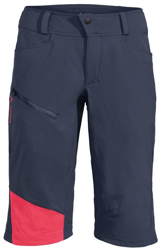 Le short Moab est bicolore et long (entrejambe 38cm) dans un tissu léger et élastique. Le port des genouillères est tout à fait adapté.