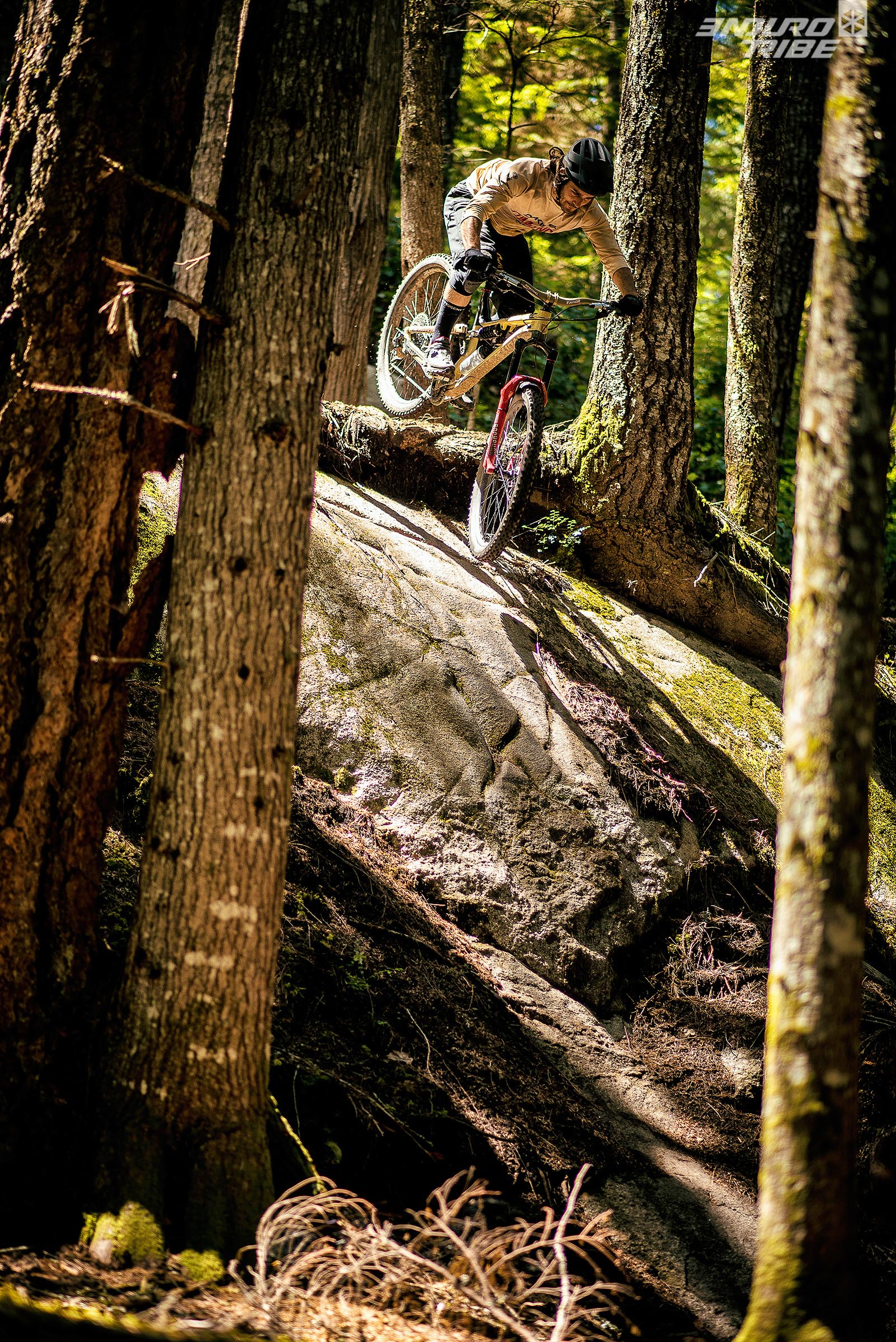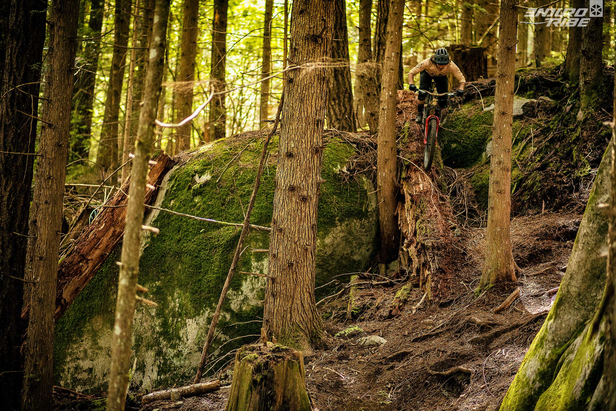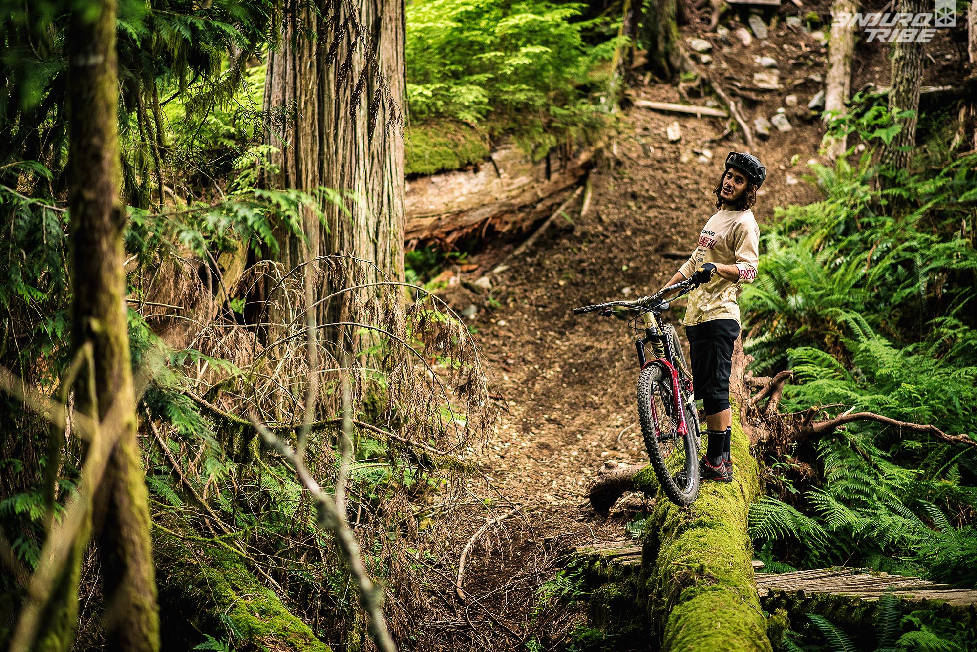 On va shooter Treasure Trail, le trail de Squamish réputé pour son engagement et son absence de flow… Surtout qu’en bas de Treasure, il y a un Log énorme recouvert de mousse qui passe à 5m au dessus d’un champ de rochers ressemblant à une fosse à crocodiles. L’idée était là.